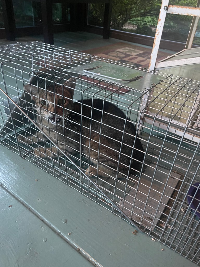 Well, rounding up the residential cats was not successful – hence the trap for catching whoever I could. The baby raccoon was not what I was hoping for, and it went straight back out into the wilderness!